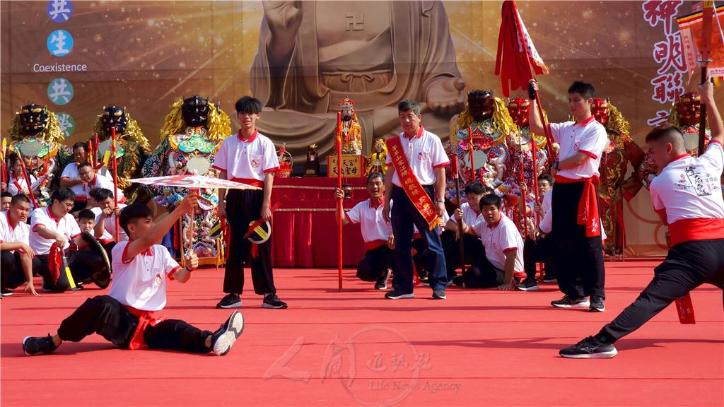 佛光山佛陀紀念館12月25日舉辦「2025世界神明聯誼會」,集結百年傳承的宋江陣與各地宮廟陣頭輪番登場,融合武藝、民俗與美學,在佛館萬人照相台前展演台灣獨有的宗廟文化風采,彰顯無形文化資產的深厚底蘊與生命力。