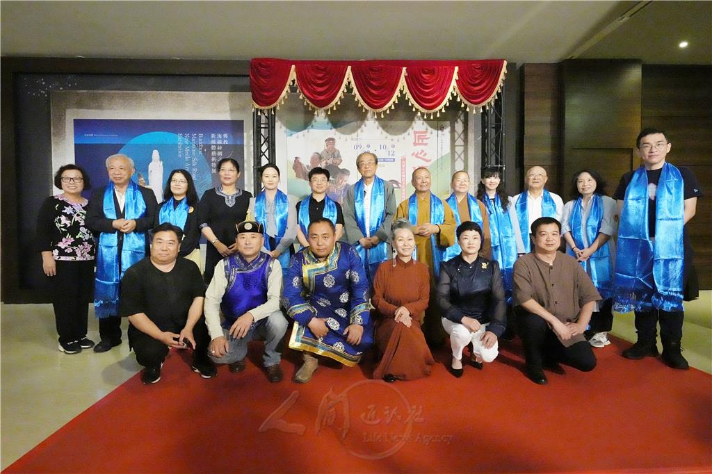 圖說:佛光山常務副住持慧傳法師(第二排右6)、佛陀紀念館館長如常法師(第二排右5),偕同一眾貴賓,為「匠心傳承一內蒙古非物質文化遺產特展」揭幕。圖/人間社記者蔡忠宏