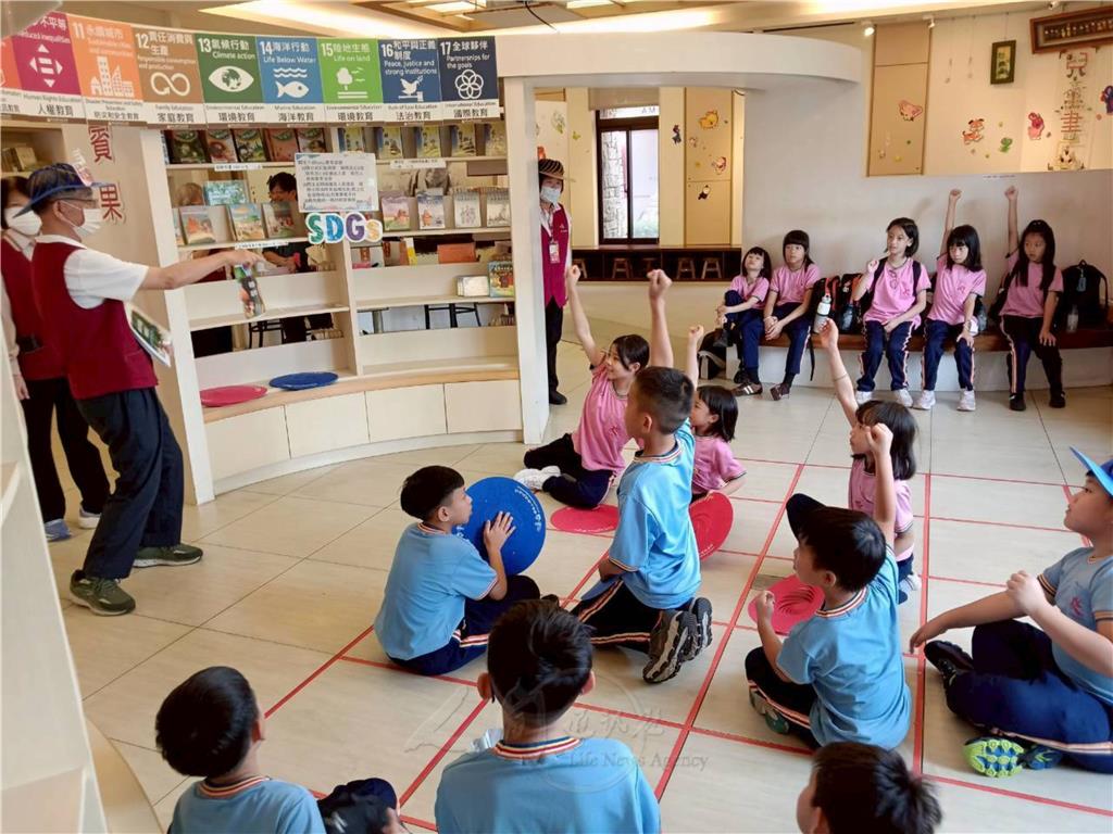 圖說:均頭三、四年級學生勇闖「環境教育列車」,學習到「SDGs永續發展目標」。圖/均頭中小學提供
