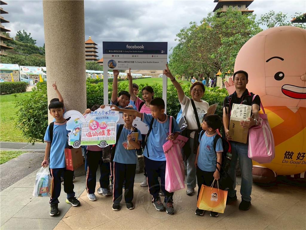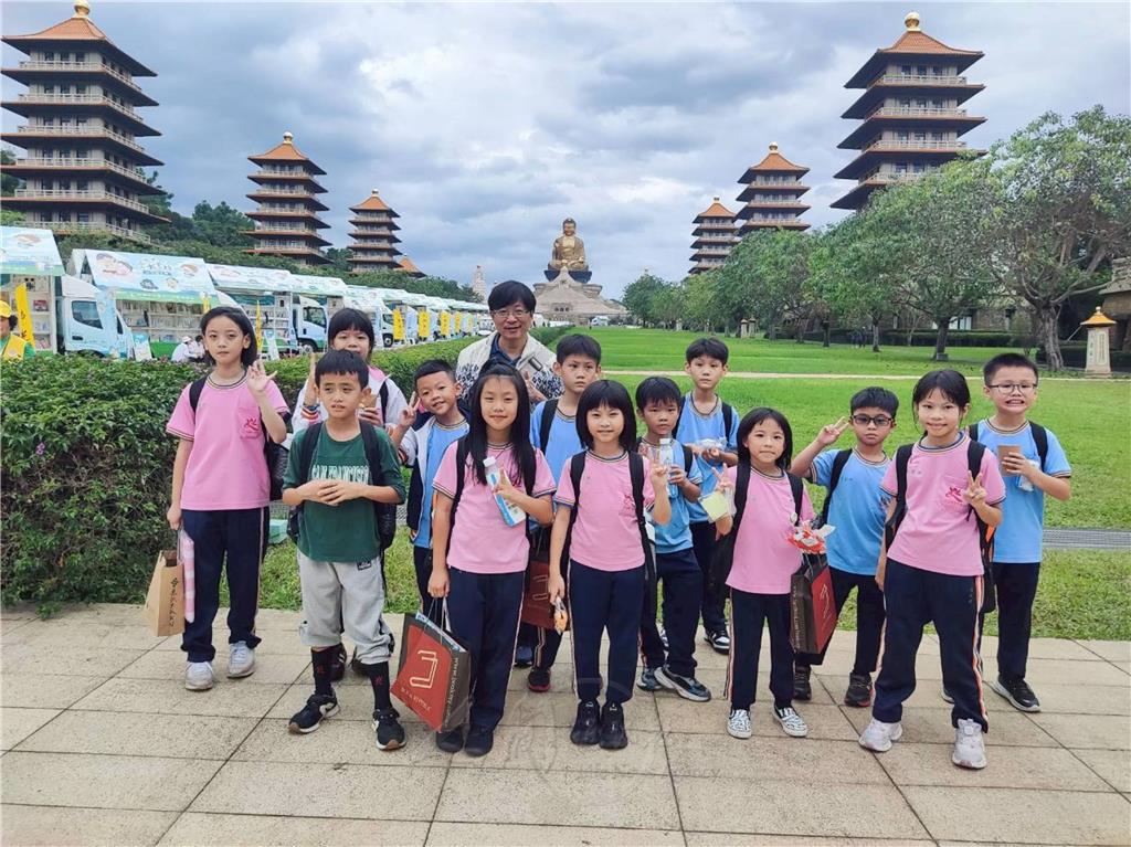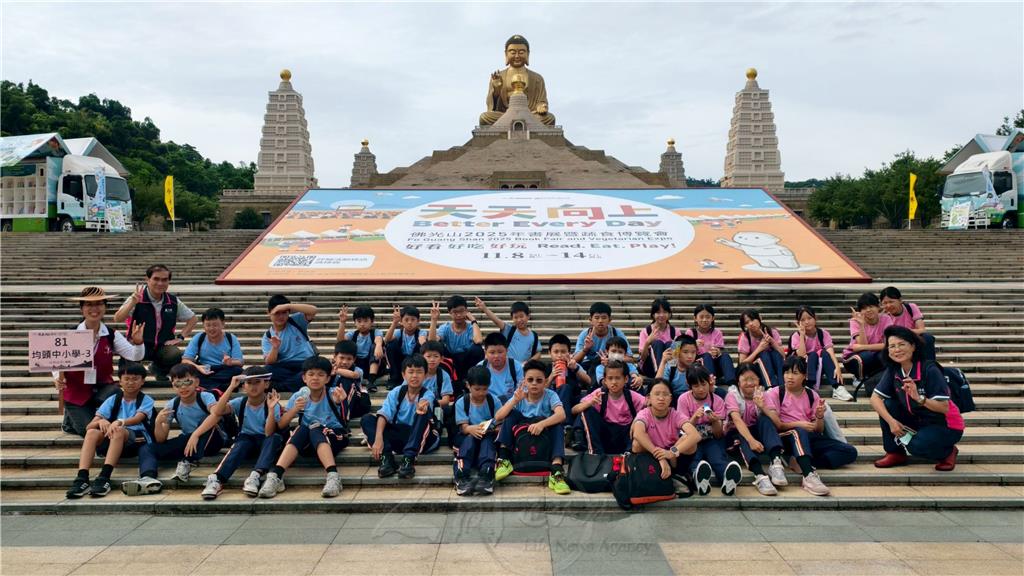 佛光山均頭中小學師生熱情參與「2025國際書展暨蔬食博覽會」, 11月11日校長胡金枝帶領一至七年級師生近160人到佛陀紀念館展區,在專業的義工導覽下,閱讀好書、品嘗美食,勇敢闖關去。