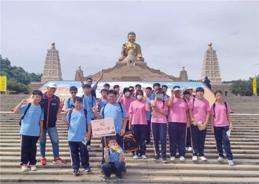 圖說:均頭五、六年級師生和佛光大佛合影。圖/均頭中小學提供