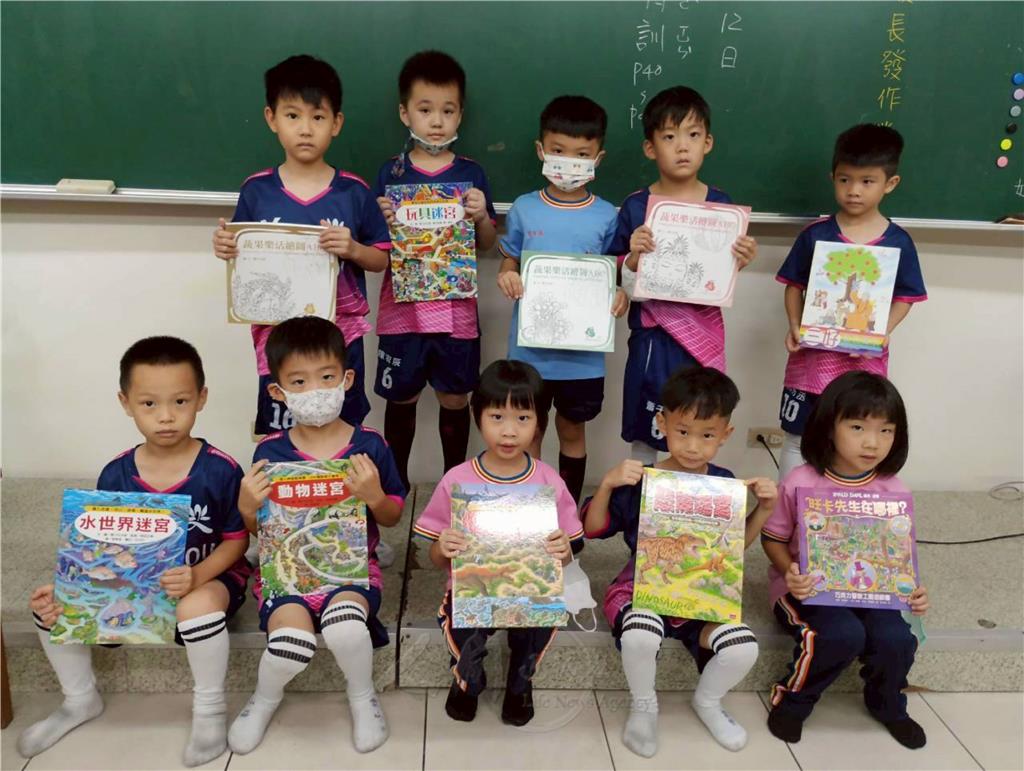 圖說:一年級小朋友是「迷宮迷」和「蔬果迷」,大家買了各類迷宮書籍、蔬果畫冊。圖/均頭中小學提供
