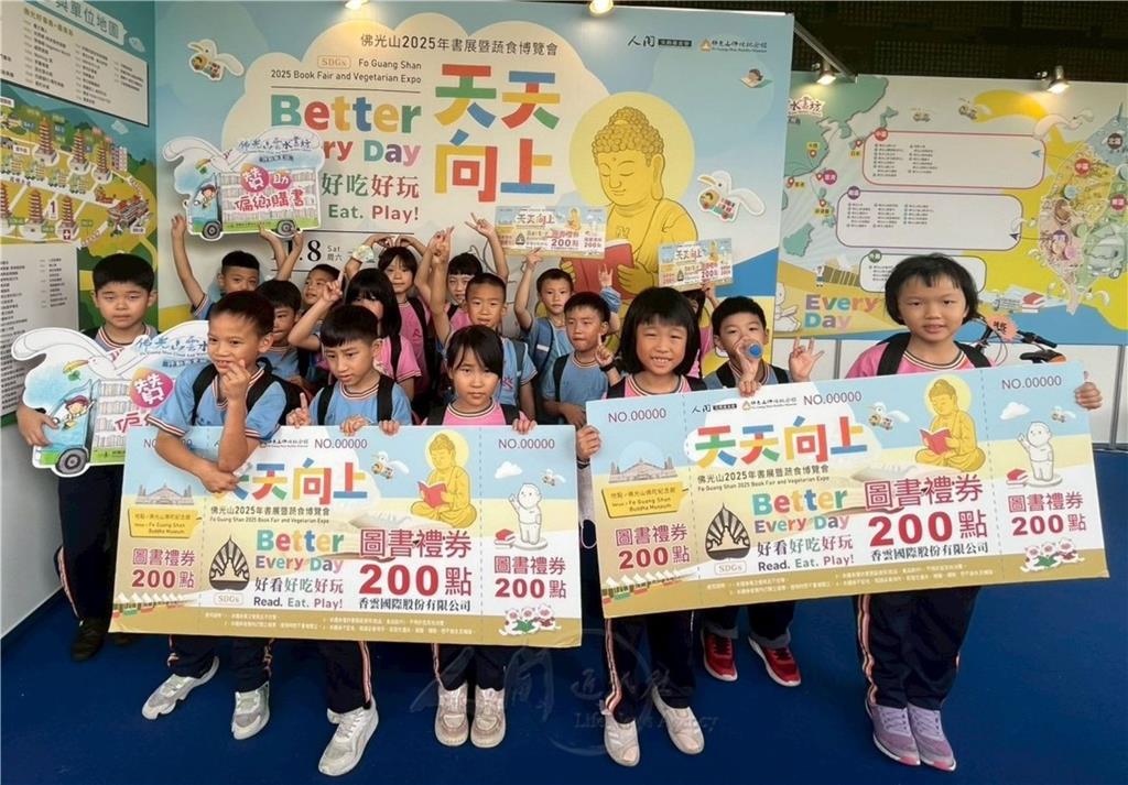 均頭校長胡金枝表示,均頭董事長覺居法師非常重視均頭學子閱讀力的培養,今年贊助近11萬圖書禮券,為均頭圖書館添購各類書籍,也致贈師生每人200元圖書禮券,讓大家盡情購買圖書文具;另感謝主辦單位、協辦單位用心籌備「2025國際書展暨蔬食博覽會」,讓大家都留下書香閱讀和共享美食的幸福回憶。