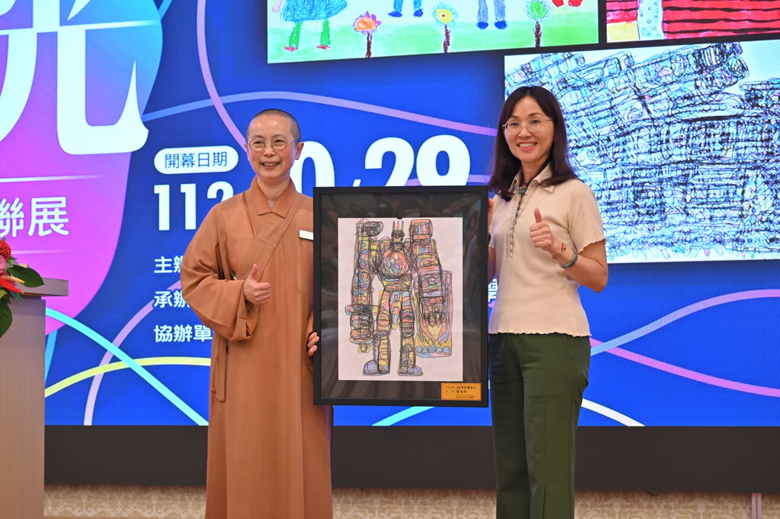圖說:此次贈以楠梓特殊學校謝秉均畫作〈AI智慧機器人〉予佛館表示感謝。圖/佛光山佛陀紀念館