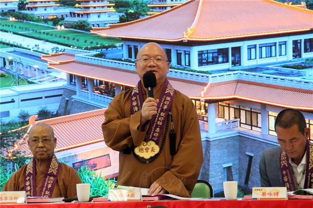 圖說:中華傳統宗教總會總會長心保和尚致詞表示,當人心向善,社會就會和諧,人我和敬,人民就能幸福安樂。圖/人間社記者李生鳳