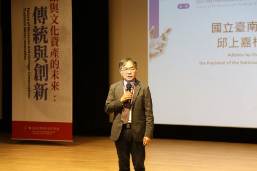 國立臺南藝術大學邱上嘉校長則表示,本研討會希望從文化的深層理解出發,連結修復實務與創新思維,使藝術創作能夠持續扎根並發展。他期許透過雙年研討會,促進學術能量均衡與交流,從博物館與文化資產的傳統與創新中探索更多未來可能。