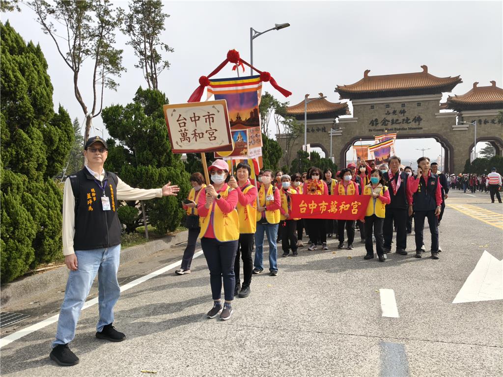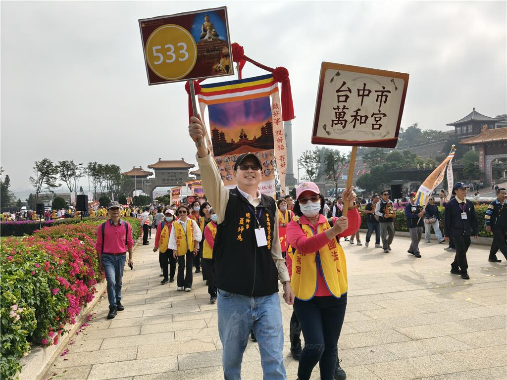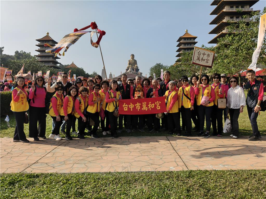 今年是萬和宮「老大媽」參與世界神明聯誼會第14年,由萬和宮常務董事陳阿水率團,董事張俊鎮、陳曜琪、監事徐光化、祕書賴榮裕及服務、誦經團義工等共34名代表參與;中華傳統宗教總會總幹事藍竫為、佛光山惠中寺西屯分會會長張岳斌及佛光人陪同,場面莊嚴熱鬧。