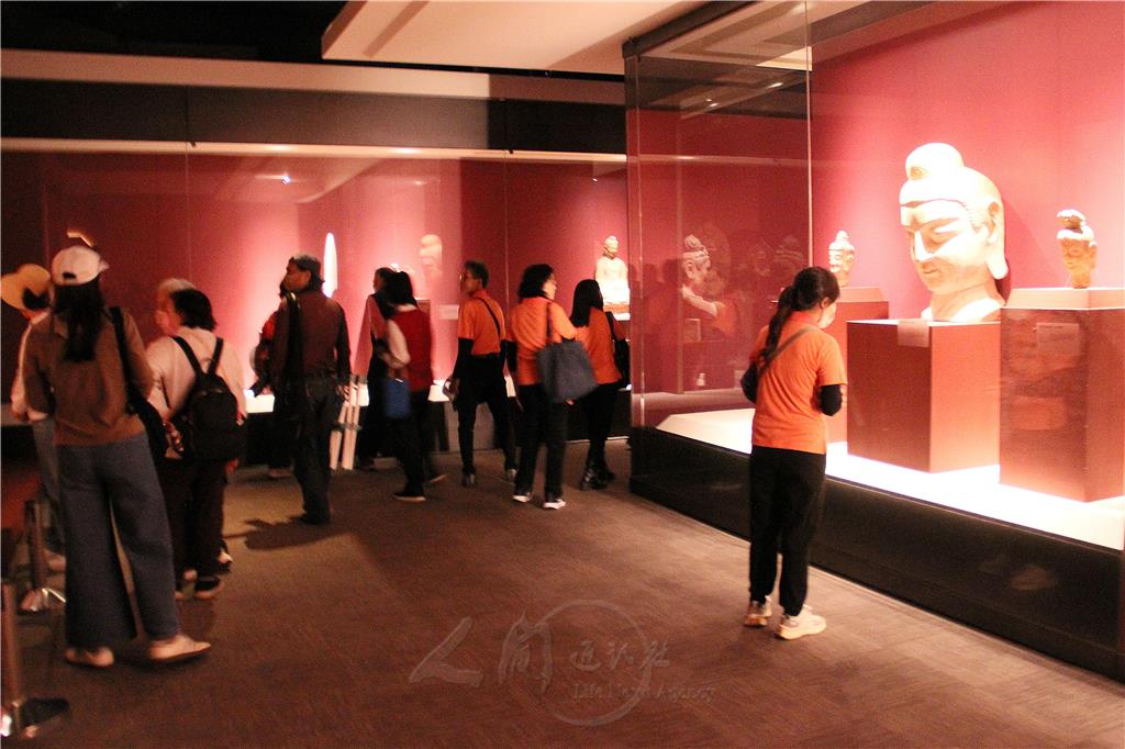圖說:欣賞「東方微笑·跨越千年一麥積山石窟藝術特展」。
