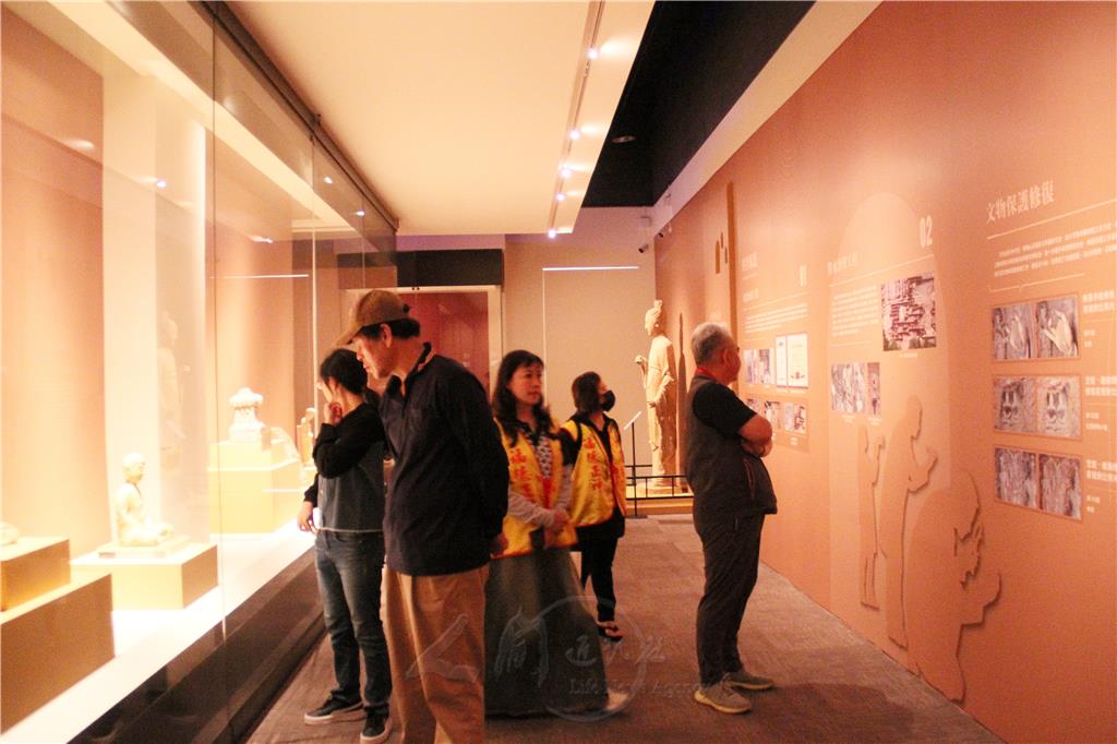 台中沙鹿德林宮一行參觀麥積山石窟藝術特展,德林宮主任委員王世雄表示,他們參加神明聯誼會已有8年,每年大家都很期待。讚歎佛館的展覽讓大家不必走得大老遠,就可以欣賞到石窟和佛教的精華。