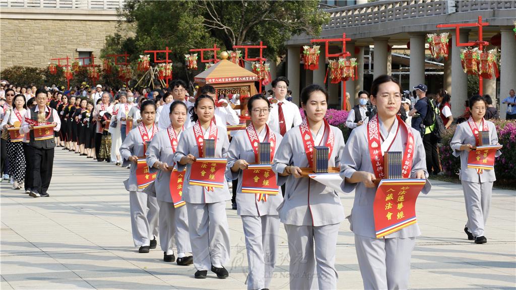 圖說:由佛光山叢林學院女眾學部恭敬捧持,被譽為「經中之王」的《妙法蓮華經》,象徵佛法常住、慧命相續。