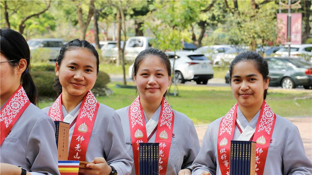 圖說:佛光山叢林學院女眾學部恭敬捧持《妙法蓮華經》,象徵佛法常住、慧命相續。
